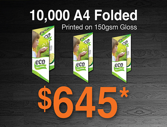 A4 folded brochure is a very popular brochure for marketing including letterbox distribution. Its flat size is 210mm x 297mm. Our brochures are printed on premium 150gsm gloss paper which is the most common paper choice for brochures.