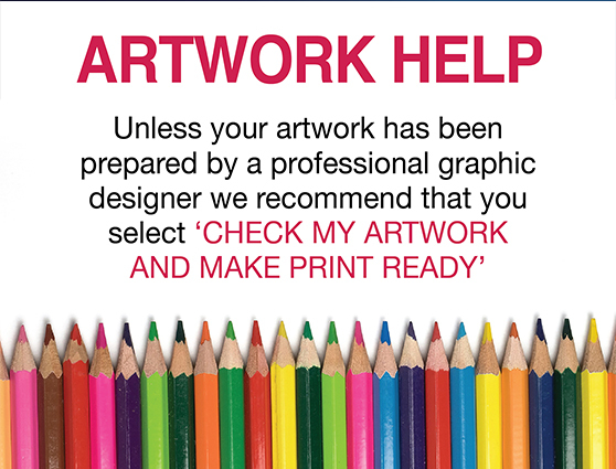 Supply artwork which requires us to CHECK YOUR ARTWORK AND MAKE READY. We recommend that you select this option unless your artwork was prepared by a professional graphic artist. There is a charge of $22 for our services, or